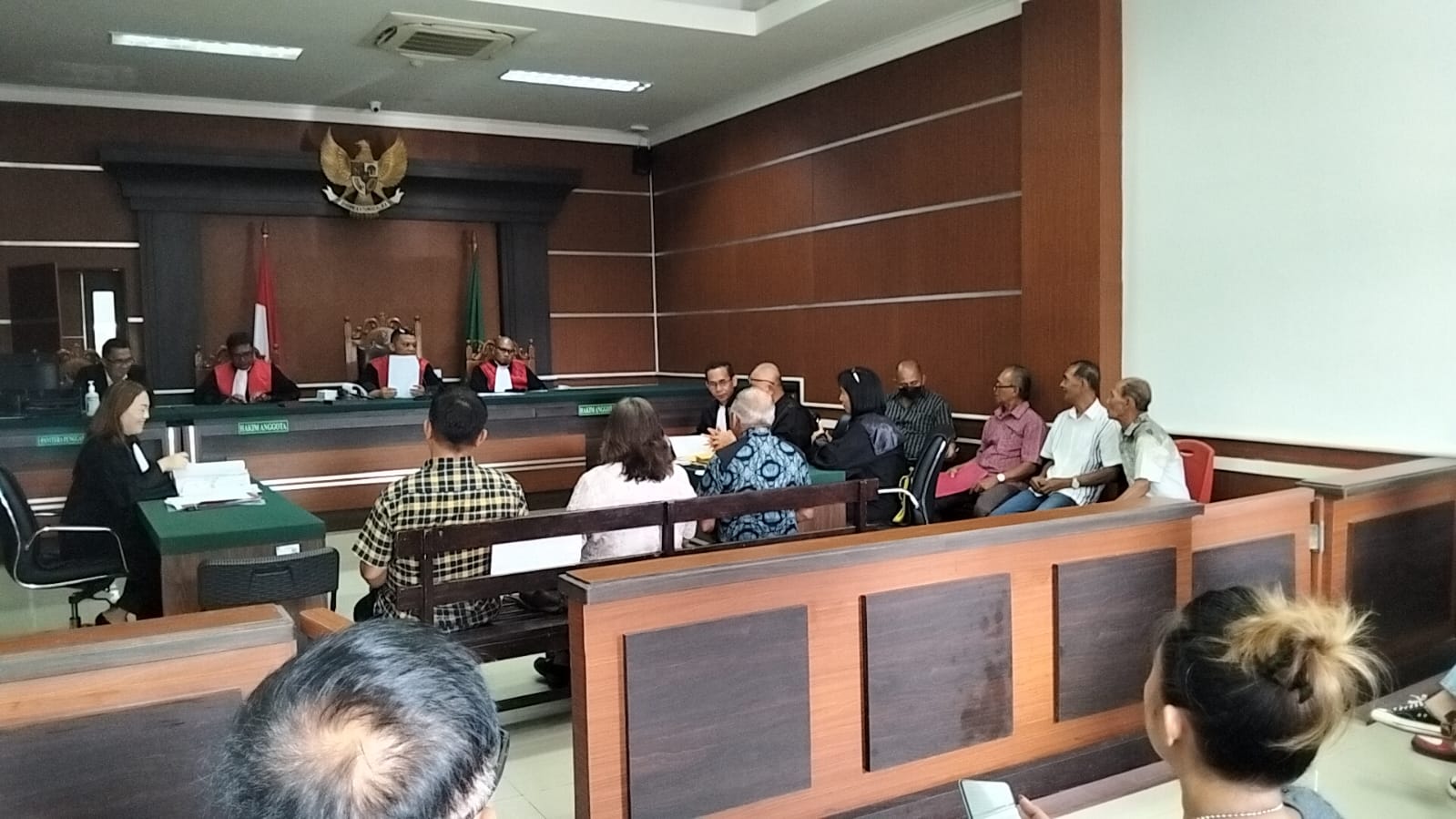 Majelis hakim yang dipimpin Erwin Marentek SH dengan anggota Bernadus Papendang SH dan Aminudin Dunggio SH menutup persidangan dengan agenda pemeriksaan bukti selanjutnya.