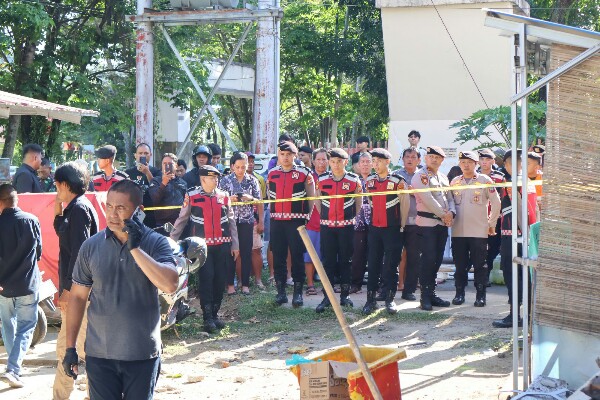 Polisi juga sudah melakukan olah TKP di lokasi yang menyebabkan 1 orang meninggal dunia akibat terkena reruntuhan bangunan dan memasang garis polisi di TKP.
