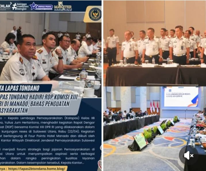 LANGOWANNEWS Kepala Lembaga Pemasyarakatan (Kalapas) Kelas IIB Tondano menghadiri rapat dengar pendapat (RDP) bersama Komisi XIII DPR RI yang digelar di Manado. Kegiatan ini menjadi bagian dari upaya memperkuat sistem pemasyarakatan di daerah, khususnya di Sulawesi Utara.